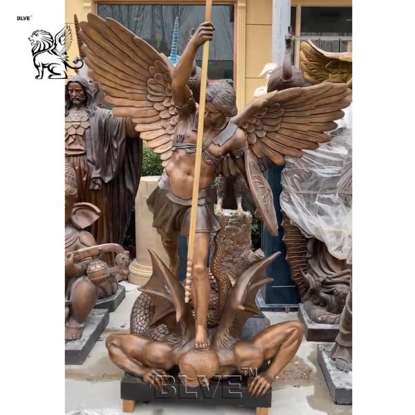 Bronze St. Michael Kills the Devil Sculpture Metal Archangel Statue Famous Religious Angel Large Western Style Images |